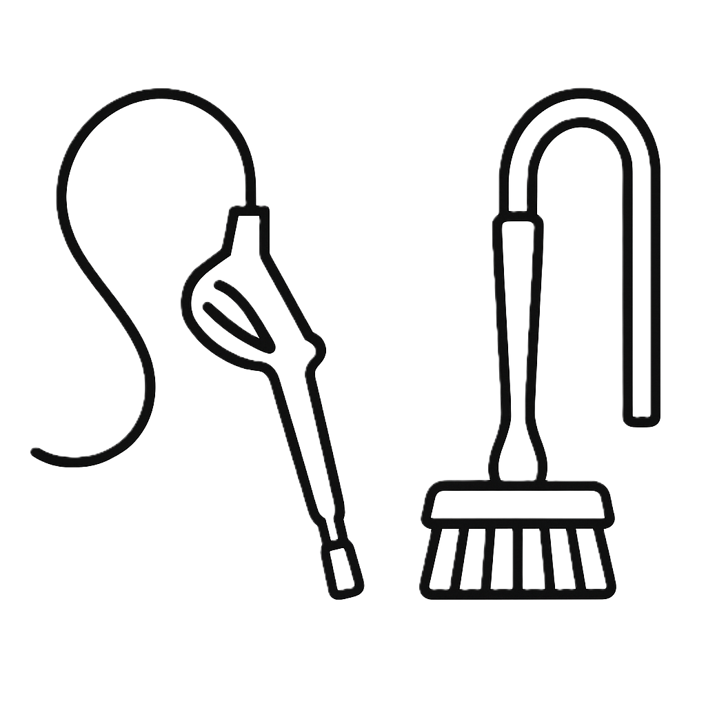 Mytí kartáčem - mytí kartáčem z přírodních žíní, horkou změkčenou vodou, mycím přípravkem a aktivní pěnou.